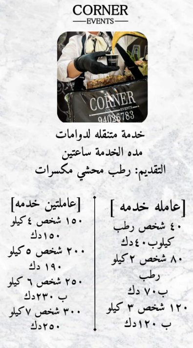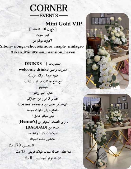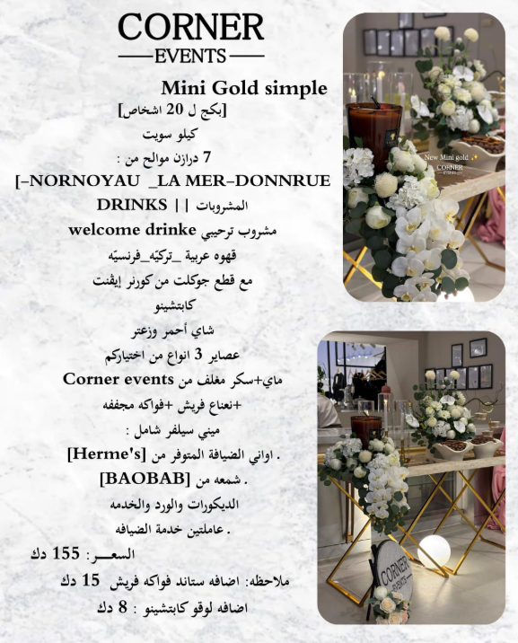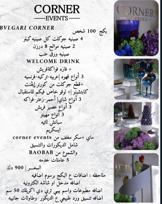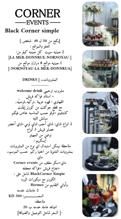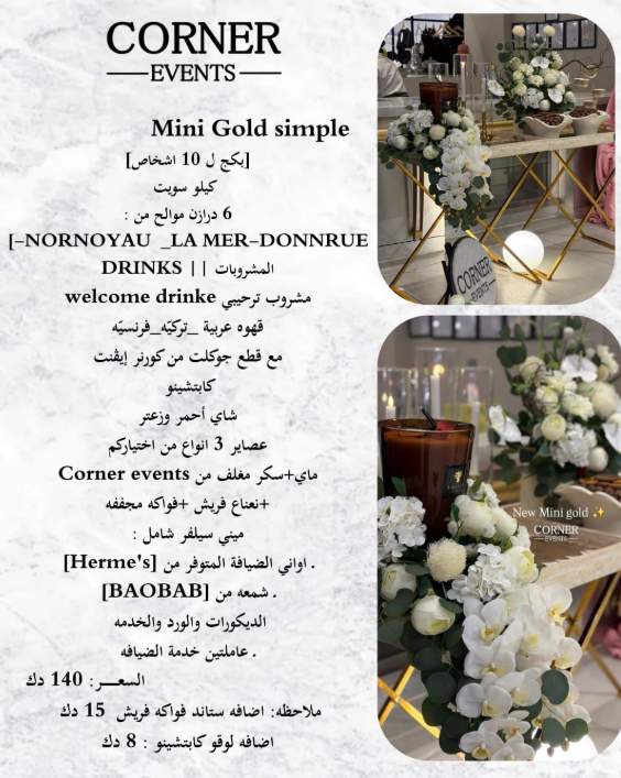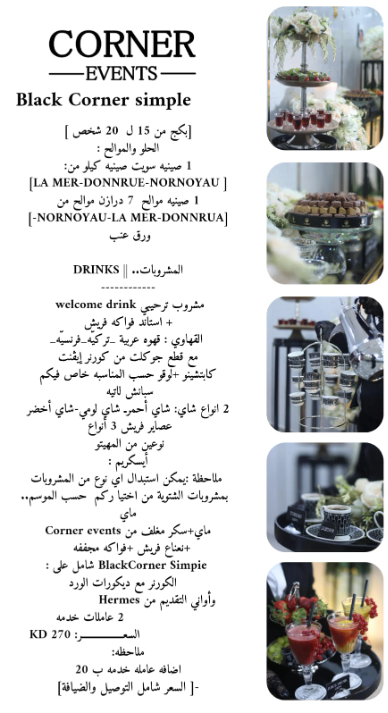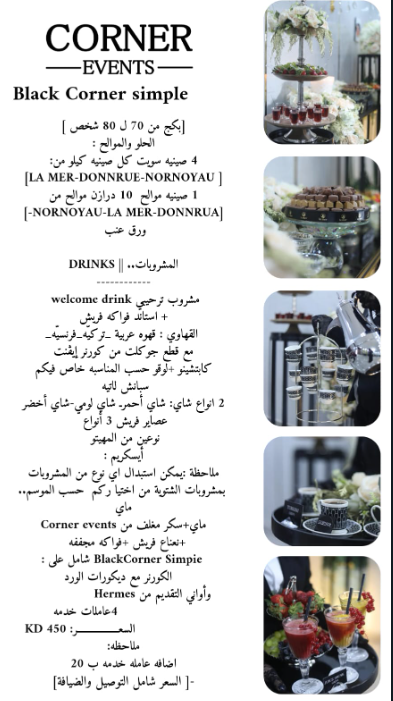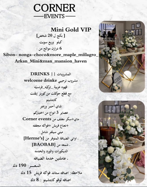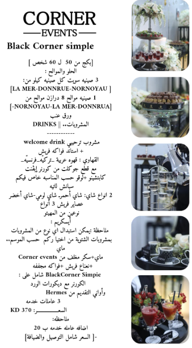 | – ضيافة بأسعار مناسبة | – ضيافة أنيقة وحصرية للمناسبات الراقية |