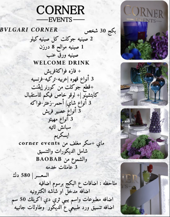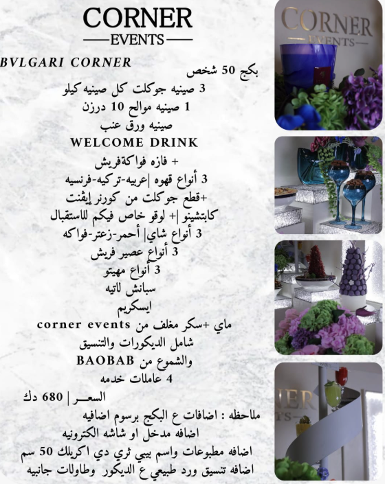 ركن جديد للمناسبات الخاصة بالاستقبالات والحفلات وحفلات الزفاف